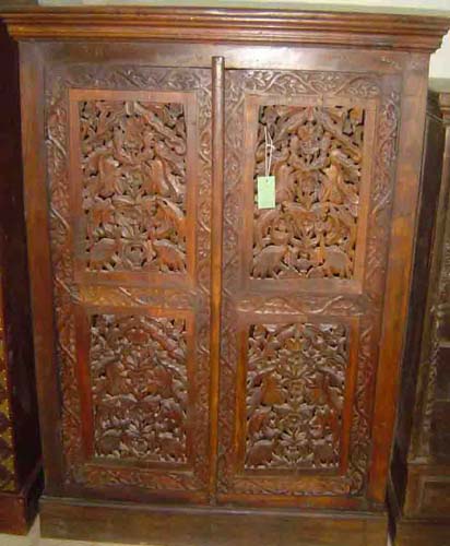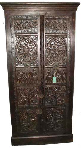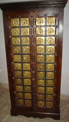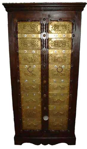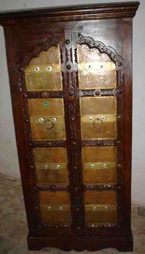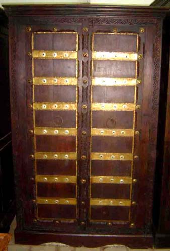 Old Almirah and Old Furniture, with Brass Fitting Doors, Tribal Carving Panels and Teak Wood. |
